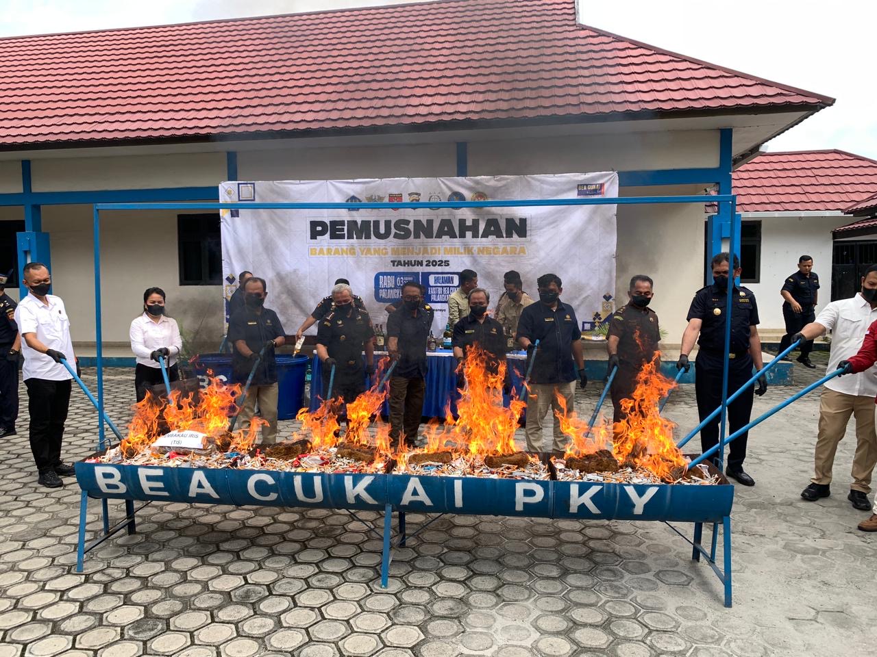 Seluruh barang ilegal tersebut dimusnahkan setelah mendapatkan persetujuan dari KPKNL. Proses pemusnahan dilakukan melalui metode pembakaran, penimbunan, serta pembuangan isi khusus untuk minuman beralkohol, dan berlangsung di bawah pengawasan ketat berbagai instansi terkait.