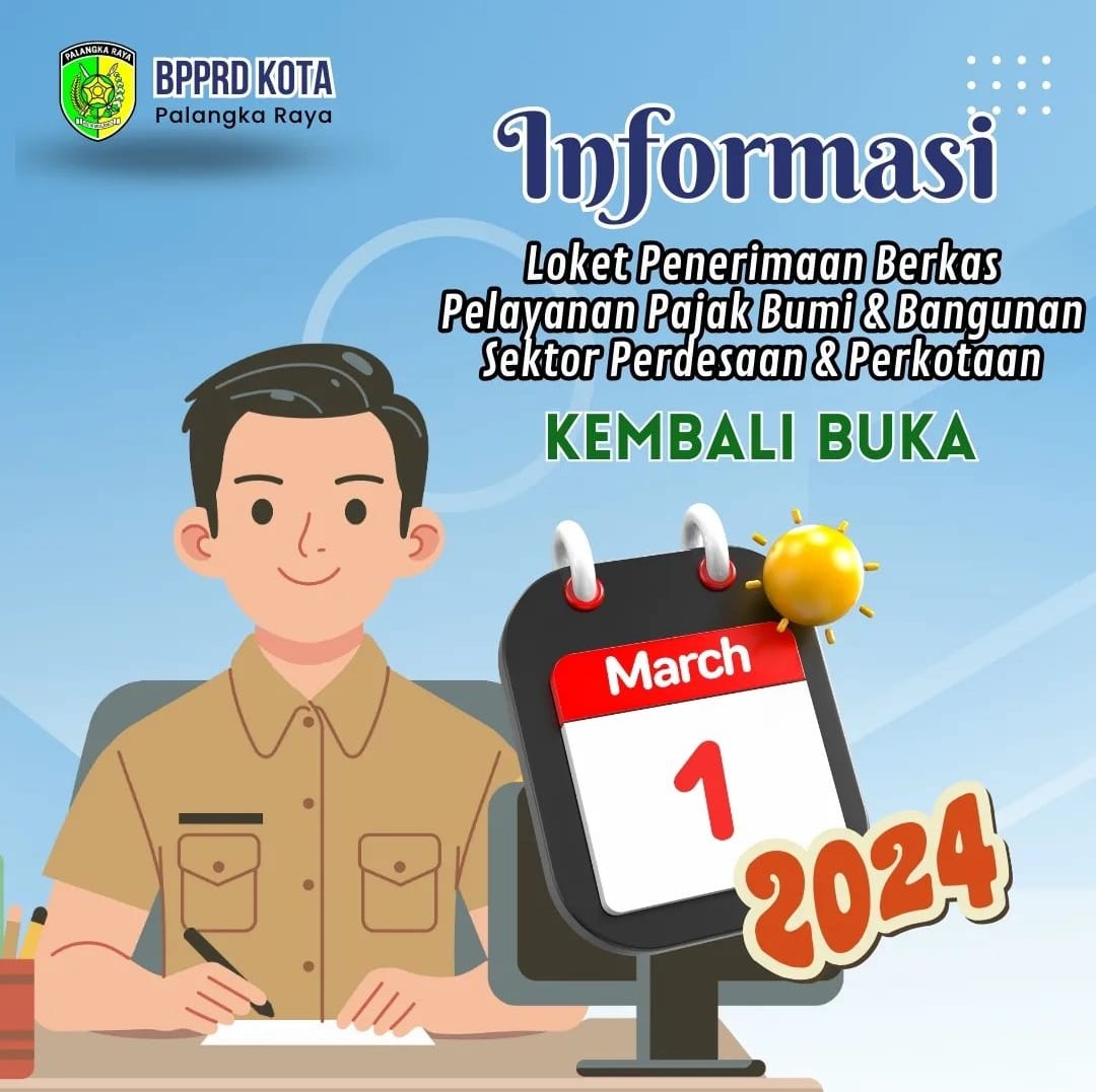 PALANGKA RAYA – Kepala Badan Pengelola Pajak dan Retribusi Daerah (BPPRD) Palangka Raya mengumumkan bahwa mulai tanggal 1 Maret, loket penerimaan berkas Pajak Pelayanan Bumi dan Bangunan Perkotaan Pedesaan (PBB P2) telah dibuka kembali.