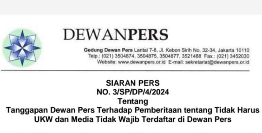 PALANGKA RAYA – Menyikapi maraknya pemberitaan di beberapa media yang berpotensi menyesatkan, terkait Wartawan tidak harus mengikuti Uji Kompetensi Wartawan (UKW), dan media tidak wajib terdaftar di Dewan Pers.