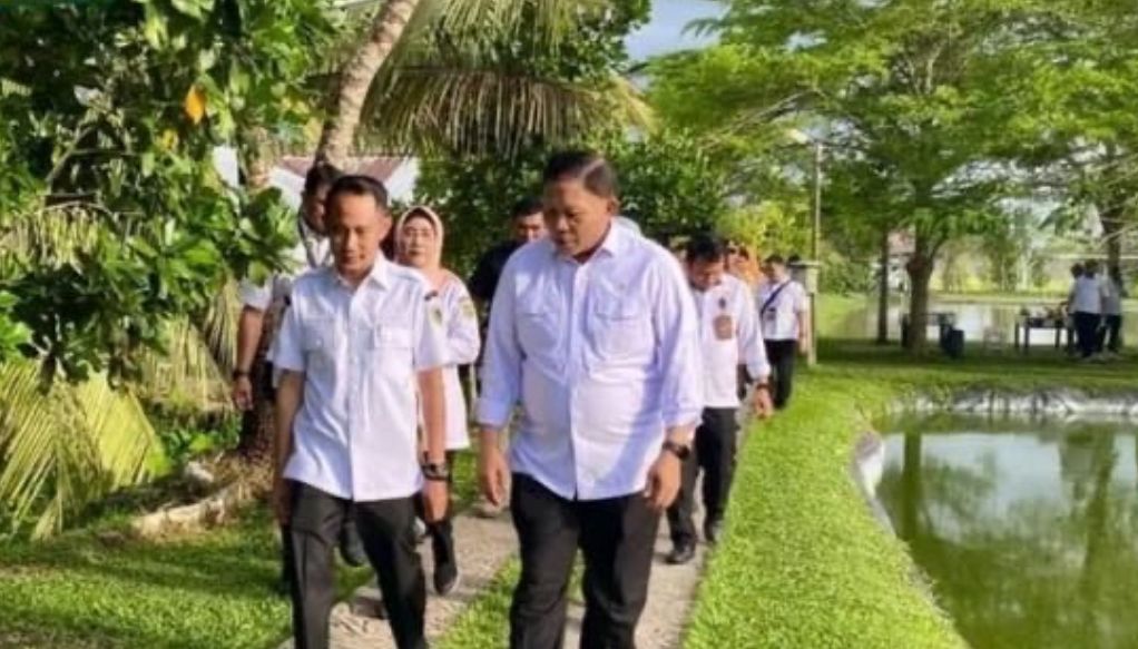 PALANGKA RAYA — Wali Kota Palangka Raya, Fairid Naparin, mendampingi Wakil Menteri Kelautan dan Perikanan RI, Didit Herdiawan Ashaf, dalam kunjungan kerja ke lokasi budidaya ikan air tawar “Datu Mangku” di Kelurahan Kereng Bangkirai, Rabu (21/5/2025). Kegiatan ini menjadi bagian dari rangkaian pra-musyawarah pembentukan Koperasi Kelurahan Merah Putih.
