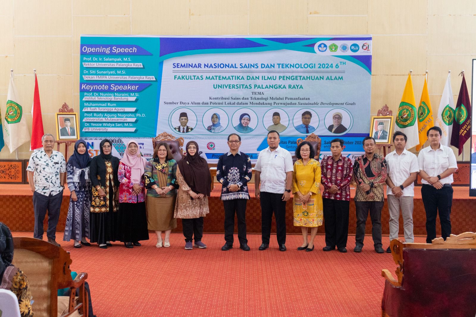 PALANGKA RAYA – Fakultas Matematika dan Ilmu Pengetahuan Alam (FMIPA) Universitas Palangka Raya (UPR) sukses menggelar Seminar Nasional Sains dan Teknologi 2024 yang bertajuk “Kontribusi Sains dan Teknologi Melalui Pemanfaatan Sumber Daya Alam dan Potensi Lokal dalam Mendukung Perwujudan Sustainable Development Goals (SDGs).” Acara yang berlangsung di Ballroom Pusat Pengembangan IPTEK dan Inovasi Gambut UPR pada hari Sabtu, 5 Oktober 2024 ini diselenggarakan dengan format hibrid, yang memungkinkan partisipasi baik secara langsung maupun daring.