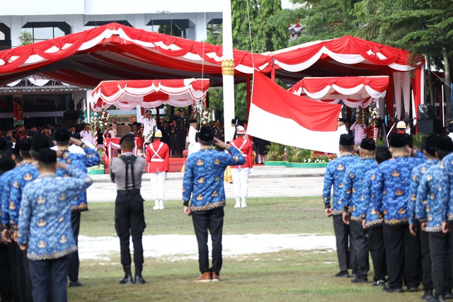 Dalam sambutannya, Gubernur Agustiar menyebut peringatan HUT ke-80 RI sebagai momentum berharga untuk mengenang jasa para pahlawan sekaligus memacu pembangunan daerah.