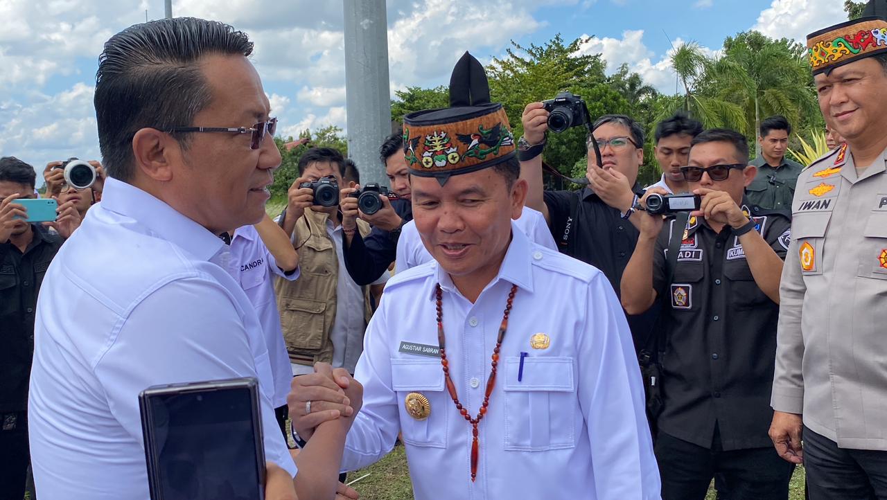 PALANGKA RAYA – Gubernur Kalimantan Tengah (Kalteng) Agustiar Sabran menyambut kedatangan Menteri Hukum Republik Indonesia (Menkum RI), Supratman Andi Agtas, di Bandara Tjilik Riwut, Palangka Raya, Rabu (5/10/2025).