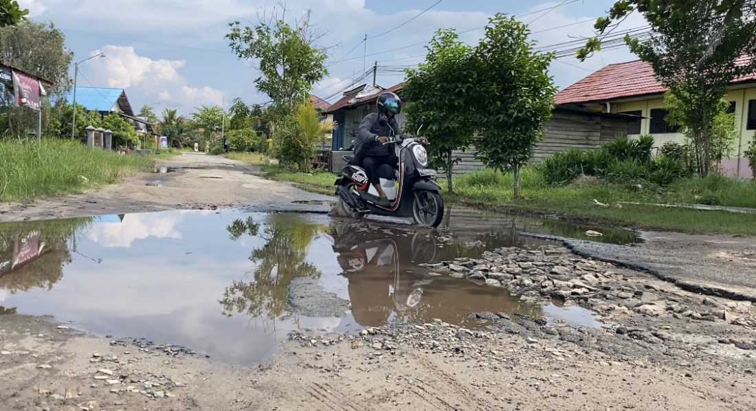 PALANGKA RAYA – Kondisi jalan bukit raya XV semakin parah, selain jalannya yang bergelombang, Jalan yang rusak juga ikut tergenang air sehingga dapat membahayakan pengendara yang melintas.
