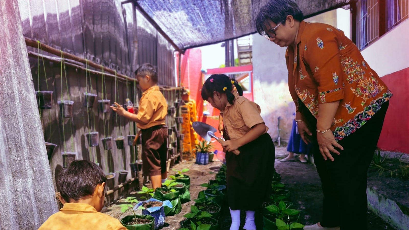 “Kebun sekolah adalah laboratorium hidup. Di sini anak-anak belajar ilmu pengetahuan, kerja sama, dan tanggung jawab. Kami ingin membangun kesadaran lingkungan sejak dini,” katanya.