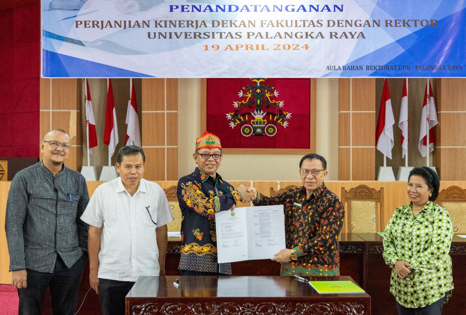 PALANGKA RAYA – Seluruh Dekan Fakultas meneken atau menandatangani perjanjian kinerja dengan Rektor Universitas Palangka Raya (UPR) yang dilaksanakan di Aula Rahan, Lantai 2 Gedung Rektorat UPR, Jumat 19 April 2024.