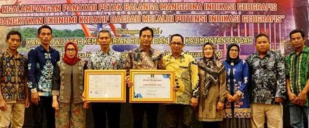 BARITO UTARA – Pemerintah Kabupaten Barito Utara menerima sertifikat merek Asosiasi Kelompok Anyaman Rotan Kecamatan Gunung Purei dari Kementerian Hukum dan HAM di Palangka Raya, Kamis (22/2/2024).