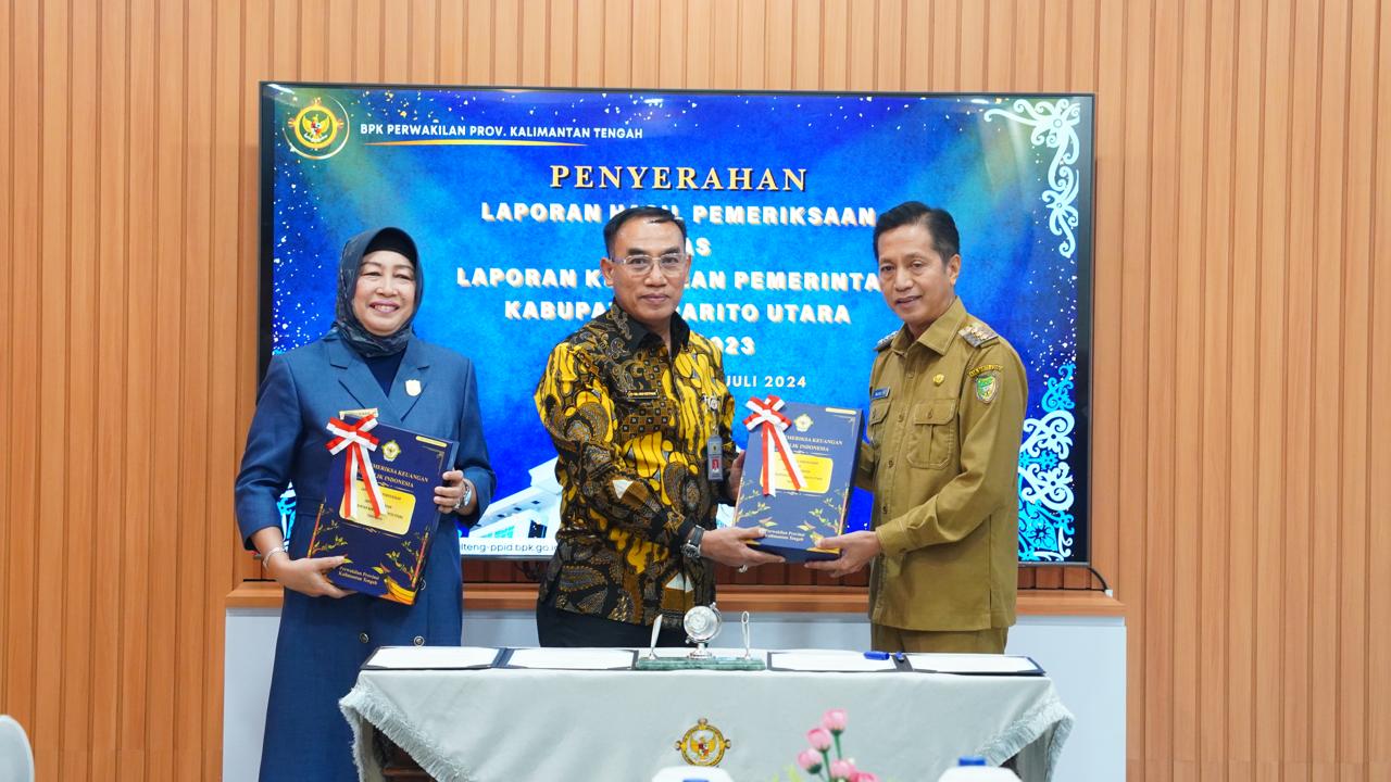PALANGKA RAYA – Pemerintah Kabupaten (Pemkab) Barito Utara kembali meraih opini Wajar Tanpa Pengecualian (WTP) dari Badan Pemeriksa Keuangan (BPK) RI Perwakilan Provinsi Kalimantan Tengah untuk Laporan Keuangan Pemerintah Daerah (LKPD) Tahun Anggaran 2023. Penerimaan Laporan Hasil Pemeriksaan (LHP) berlangsung di kantor BPK RI Perwakilan Kalimantan Tengah di Palangka Raya, Selasa 2 Juli 2024.