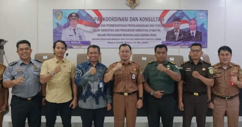 Rakor P4GN-PN tersebut digelar bersama Badan Narkotika Nasional (BNN) Provinsi Kalimantan Tengah Kalteng bertampat diruang rapat Setda labtai I Muara Teweh, Selasa, 14 Mei 2024.