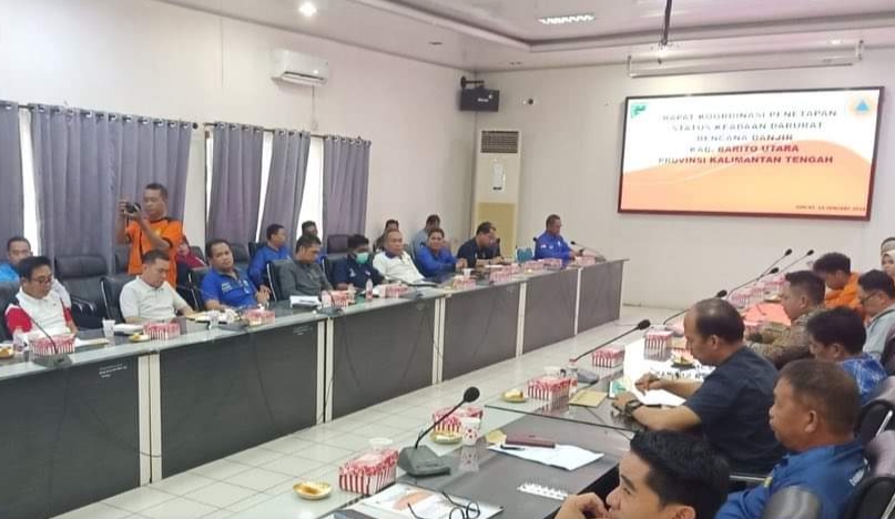 BARITO UTARA – Pemkab Barito Utara (Barut) melaksanakan rapat koordinasi (Rakor) penetapan status keadaan darurat bencana banjir di Kabupaten Barut, di Aula Setda setempat, Jumat 19 Januari 2024.