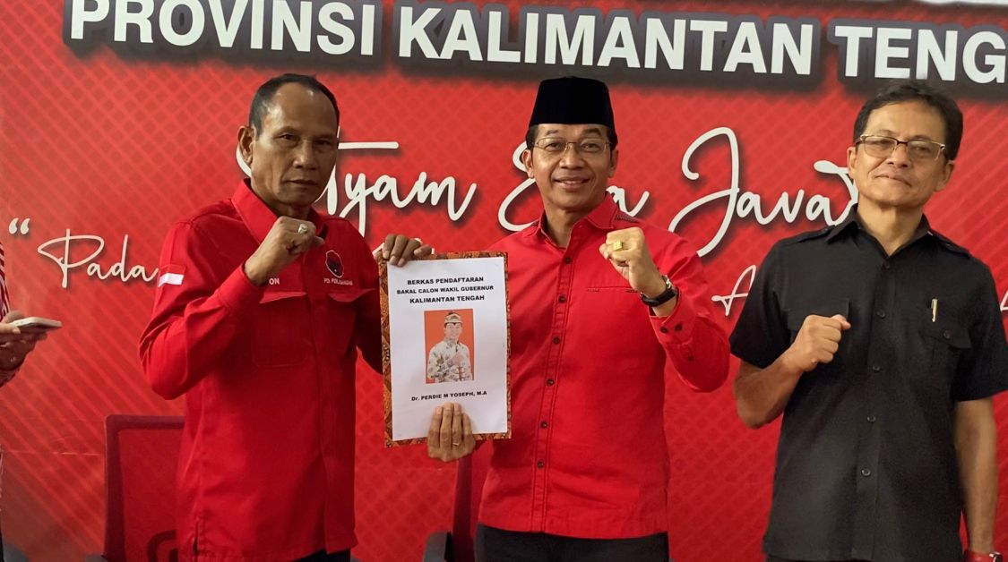Perdie M Yoseph menyerahkan berkas pencalonannya tersebut langsung ke Ketua DPD PDIP Kalteng, Arton S Dohong di sekretariat PDIP Jalan Soekarno Palangka Raya, Senin 6 Mei 2024.