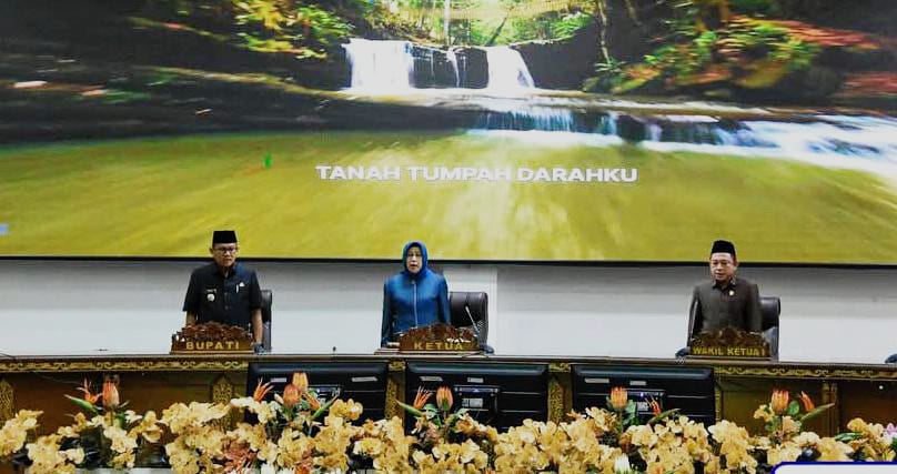 Rapat paripurna membahas Raperda tentang Pertanggungjawaban Pelaksanaan APBD Tahun Anggaran 2024. Kegiatan tersebut dipimpin Ketua DPRD Hj. Mery Rukaini didampingi Wakil Ketua I dan II, serta dihadiri unsur FKPD, Sekda, Asisten Setda, Staf Ahli Bupati, kepala perangkat daerah, dan undangan lainnya.