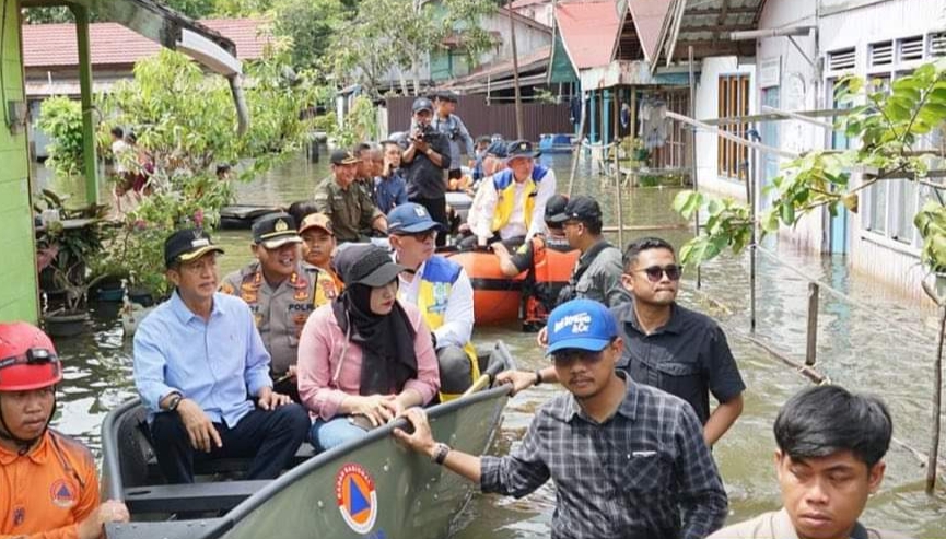 Pj Bupati Barut bersama Perwakilan Kementrian PUPR dan BWS Kalteng Tinjau Banjir
