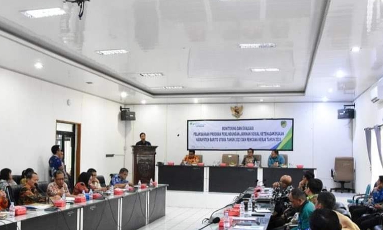 BARITO UTARA – Pj Bupati Barito Utara (Barut) Muhlis membuka secara resmi rapat monitoring dan evaluasi pelaksanaan jaminan perlindungan sosial ketenagakerjaan yang dilaksanakan oleh Dinas Tenaga Kerja, Transmigrasi, Koperasi, Usaha Kecil dan Menengah (Nakertranskop UKM) di ruang rapat Setda Lantai setempat, Kamis 18 Januari 2024.