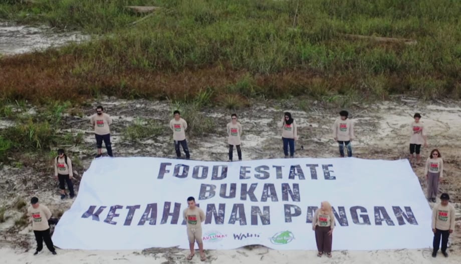 Dalam aksinya, para aktivis membentangkan spanduk bertuliskan “Food Estate Bukan Ketahanan Pangan”. Aksi tersebut untuk mengingatkan pemerintah bahwa pelaksanaan proyek food estate terjadi kegagalan.