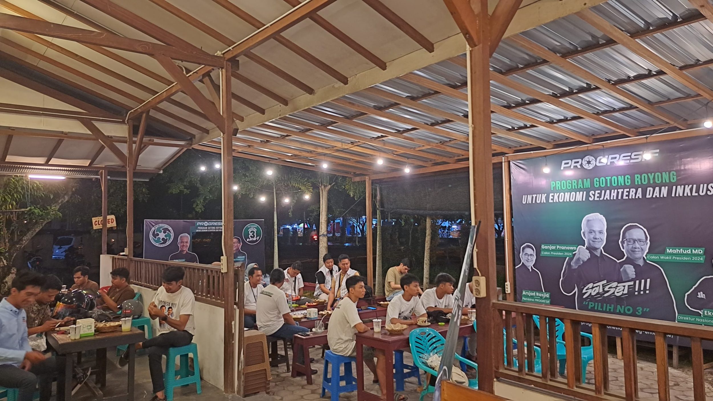 PALANGKA RAYA – Relawan Program Gotong Royong untuk Ekonomi Sejahtera dan Inklusif wilayah Kalimantan Tengah (Progresif Kalteng) menggelar Nobar Debat ke-3 Capres yang di Posko Progresif Kalteng, Kedai Kopi Kong, Palangka Raya, Minggu (7/1/2023).