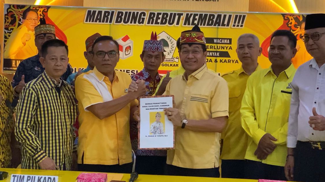 “Hari ini saya mendaftar di DPD Partai Golkar sebagai Bacawagub Kalteng karena sudah berhitung dan memang yang paling pas sebagai wakil dan kita berharap nantinya Partai Golkar dapat mengusung saya sebagai wakil di Pilgub Kalteng 2024,” kata Perdie.