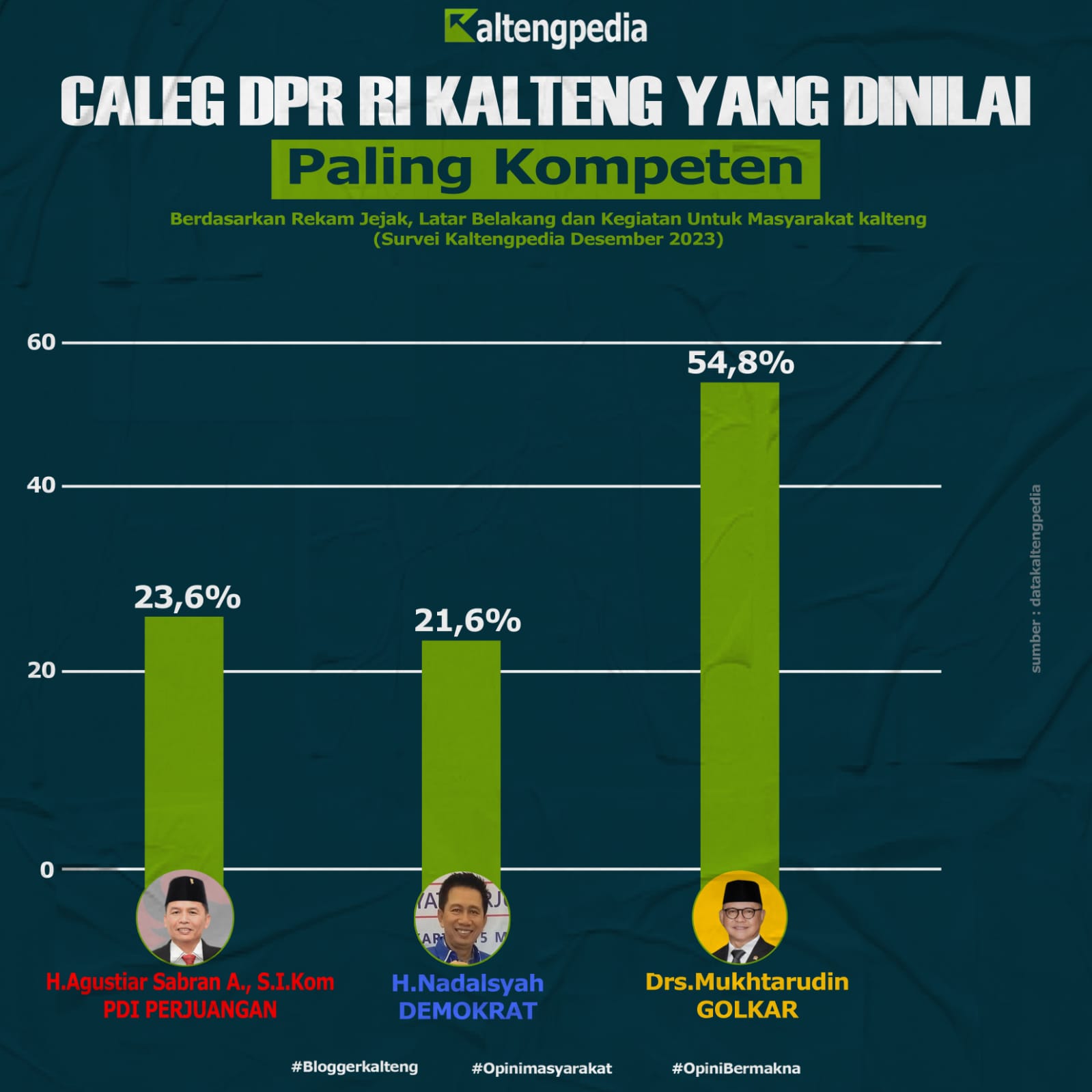 Survei yang dilakukan oleh pihak Kaltengpedia dirilis pada akhir tahun 2023 tersebut membandingkan elektabilitas tiga nama dari tiga partai raksasa di kalteng.