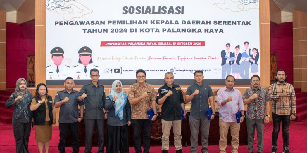 PALANGKA RAYA – Badan Pengawas Pemilihan Umum (Bawaslu) bersama Tim Sentra Penegakan Hukum Terpadu (Gakkumdu) Kota Palangka Raya menggelar sosialisasi pengawasan pemilihan kepala daerah (Pilkada) serentak 2024 di Universitas Palangka Raya (UPR). Kegiatan tersebut mendapat apresiasi dari civitas akademika UPR.